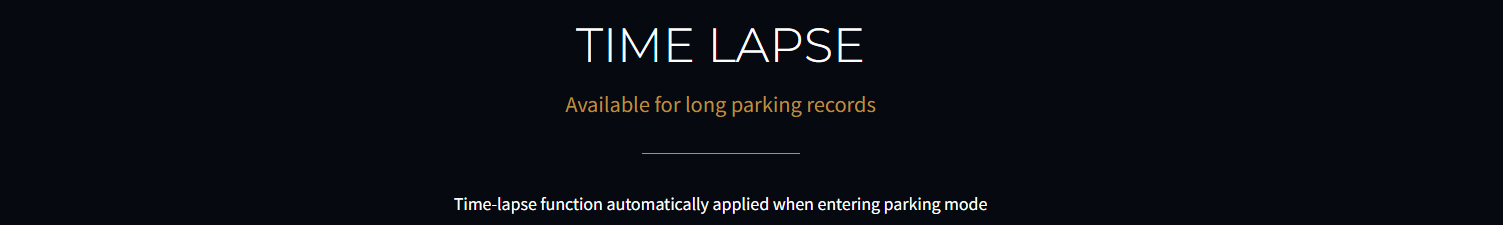 | Recording modes | Parking mode, Time lapse |