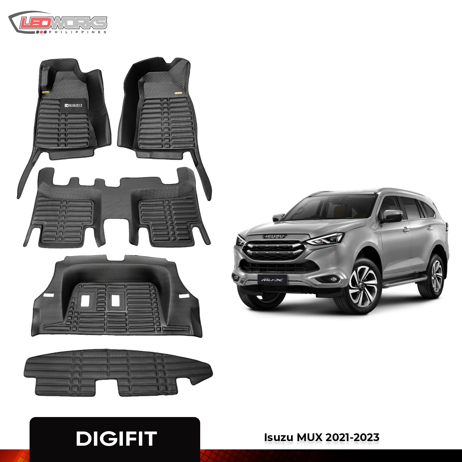 Enhance your Isuzu MUX (2021-2023) with DigiFit Premium Mats for perfect fit and all-weather protection. Upgrade now for unmatched style and durability!
