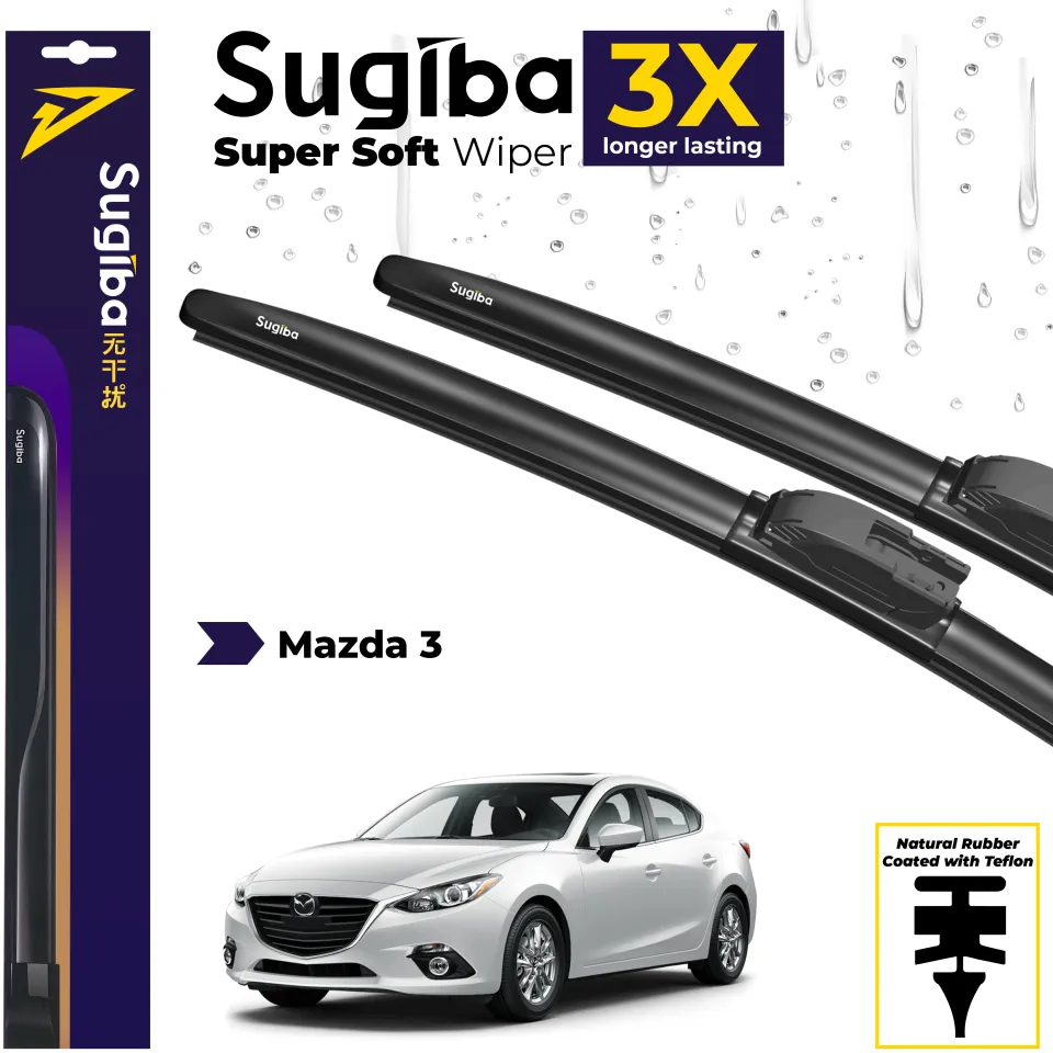 Upgrade your Mazda 3 (2013-2018) with Sugiba Super Soft Wipers for streak-free visibility and safer driving.