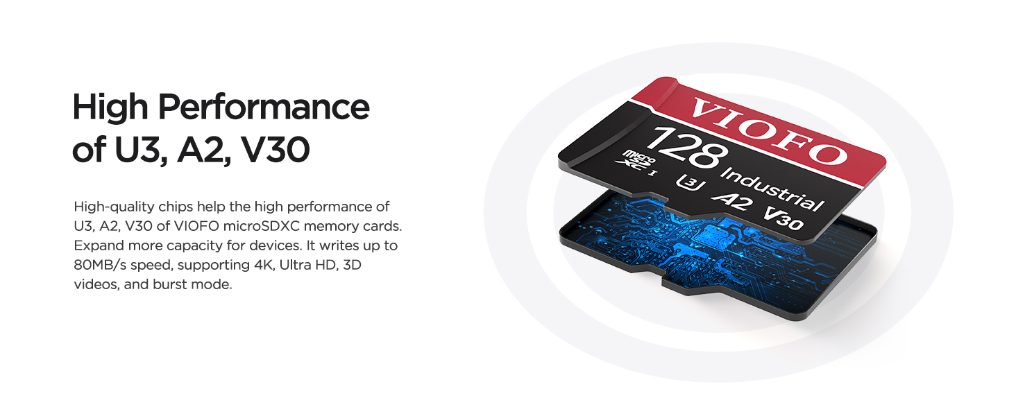 VIOFO industrial grade microSD card for extended endurance, excellent performance, and reliability.
